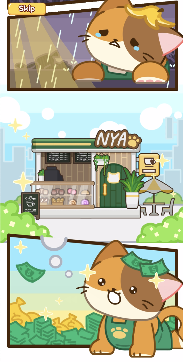 様々な猫マネージャーを雇うことで、お金を稼ぎ、カフェを拡張できます。