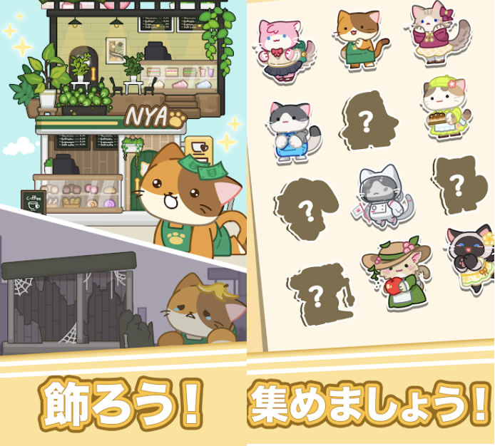 キュートなメイド猫からヒップなラッパー猫まで、お客様に人気のマネージャーを雇って、カフェの収益を上げていきましょう。
