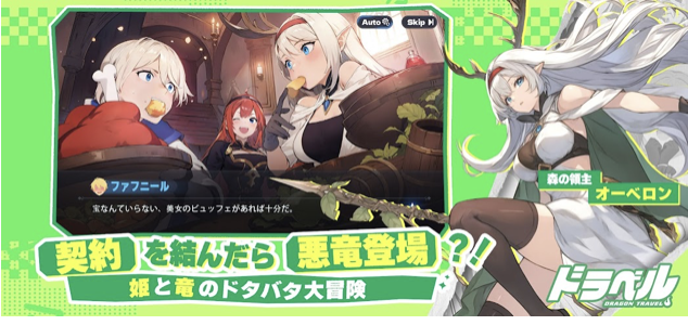 ドラベルは姫(ジークフリート)と伝説の悪竜(ファフニール)が契約して「王国復興の旅」に出る