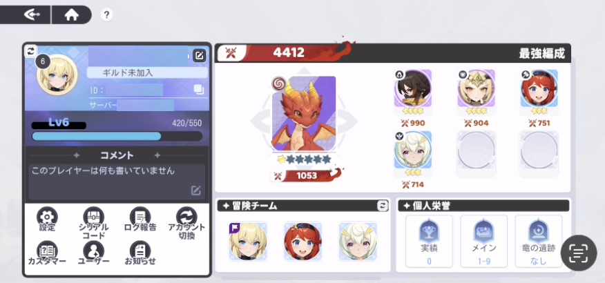 チュートリアルが終了したらメイン画面の左上のキャラクターアイコンを選択します。