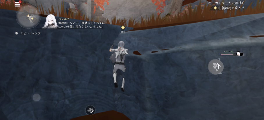 ジャンプが必要なエリアも存在し、ジャンプに失敗して川に落ちてしまうと、やられてしまうのではなく「リトライ」になります。