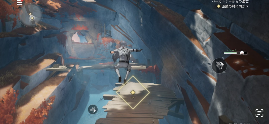 フィールドを自由に移動しながら、崖をよじ登ったりして目的地に向かいます。さまざまなギミックが用意されているので、アクションを駆使してルートを開拓していく楽しさがあります。