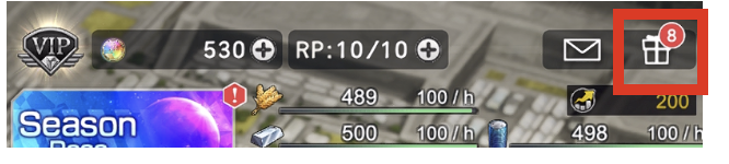 ①メイン画面、右上の「プレゼントボックス」をタップ