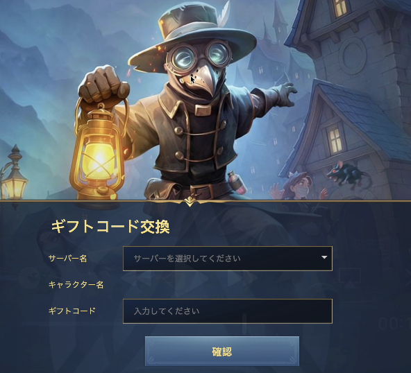 交換ページでは、Facebook、Google連携などでログインを行い、サーバーとキャラクターを選んでコードを入力します。