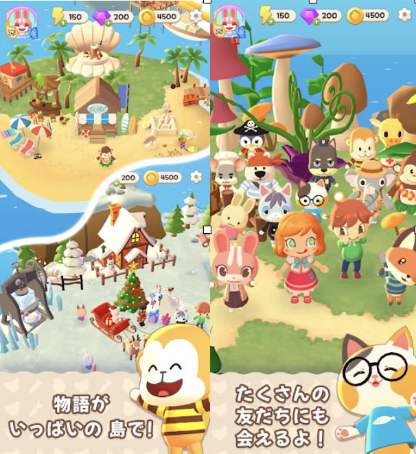 かわいい猫や、様々な動物と一緒に島を開拓し、アイテム作成の依頼をこなしながら島をデコレーションしたり、ストーリーを楽しめます。