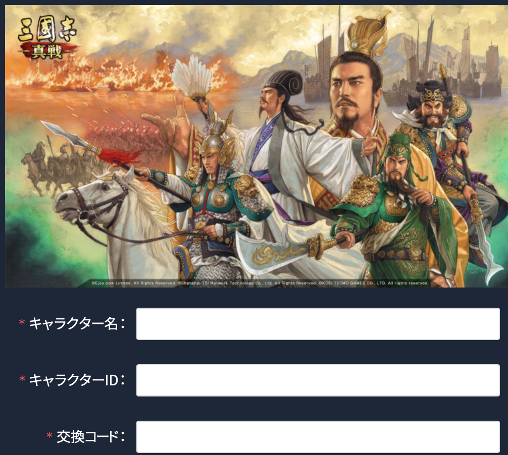 三国志真戦の交換コード(ギフトコード)の入力はゲーム外のサイトから行います。